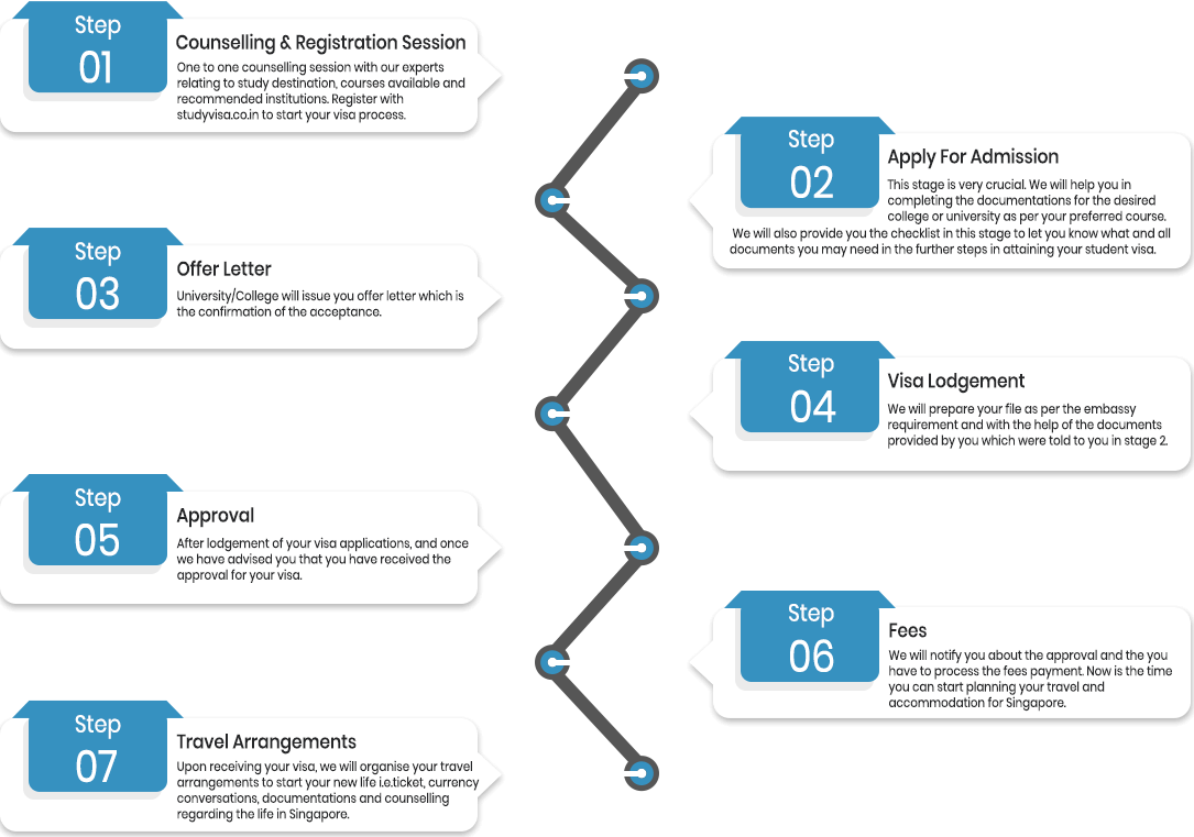 One to one counselling session with our experts relating to study destination, courses available and recommended institutions. Register with Study Visa to start your visa process.